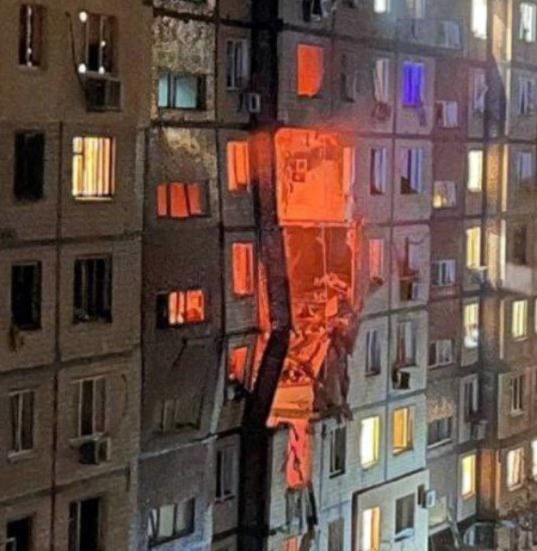 Во Днепар, голем град на исток, напад со беспилотно летало проби деветкатна зграда, при што загина една жена, додека шест лица беа повредени и хоспитализирани, вклучувајќи и едно дете, соопштија спасувачките служби.