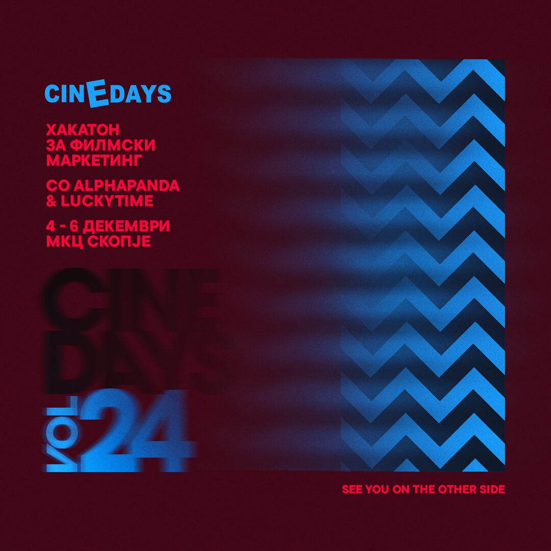 Фестивалот на европски филм Синедејс, во соработка со престижните европски маркетинг агенции Alphapanda и Luckytime, го објавува повикот за учесници на дводневниот хакатон за филмски маркетинг кој ќе се одржи од 4 до 6 декември во Младинскиот културен центар во Скопје. Настанот е наменет за млади автори, продуценти, студенти и професионалци од областа на филмот, комуникациите и маркетингот, како и за сите љубители на визуелни приказни кои сакаат да научат како се создава ефективна и препознатлива промотивна кампања.