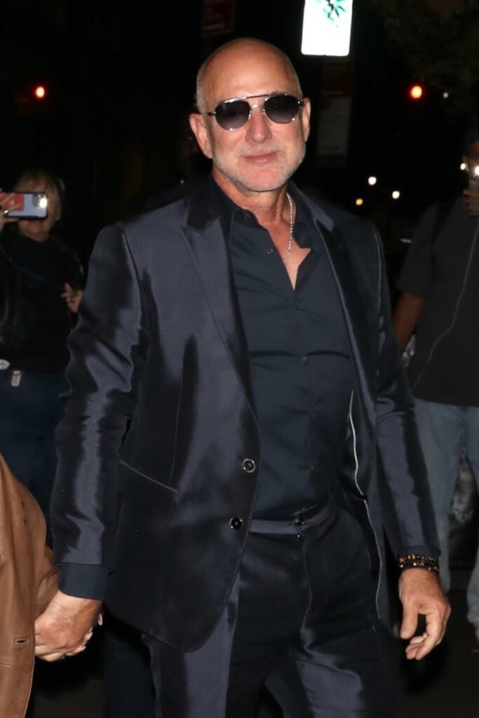 Џеф Безос, именуван од Форбс за трет најбогат човек во светот во мај 2025 година, носеше црно одело, црна свилена кошула и црни очила.