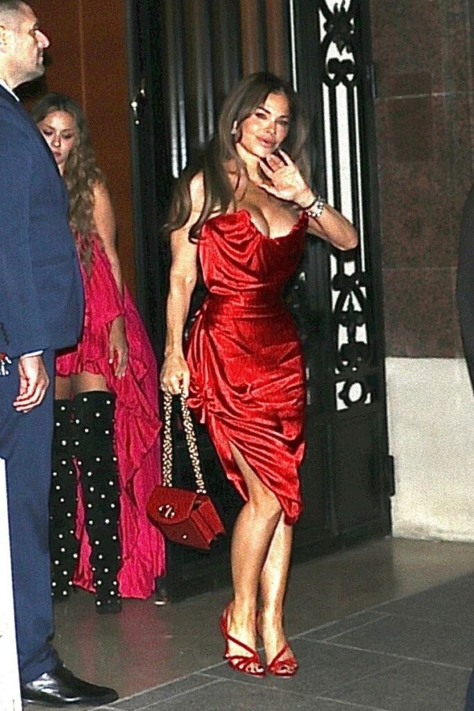 Таа ги истакна своите бујни облини во преден план, додека фустанот ги покажа нејзините нозе, благодарение на длабокиот шлиц.