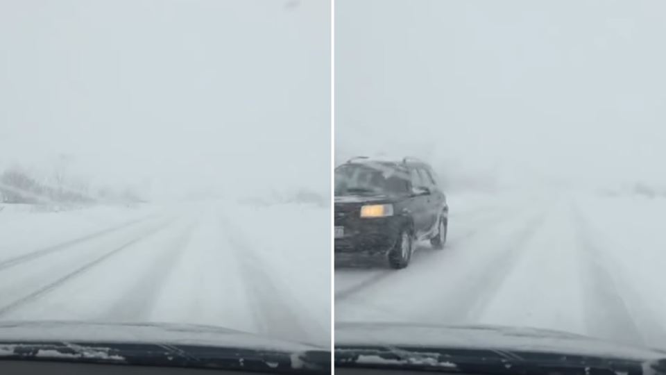 На видеото може да се види како возилата со голема тешкотија се пробиваат низ снегот, додека видливоста е значително намалена, што дополнително го зголемува ризикот од сообраќајни незгоди.