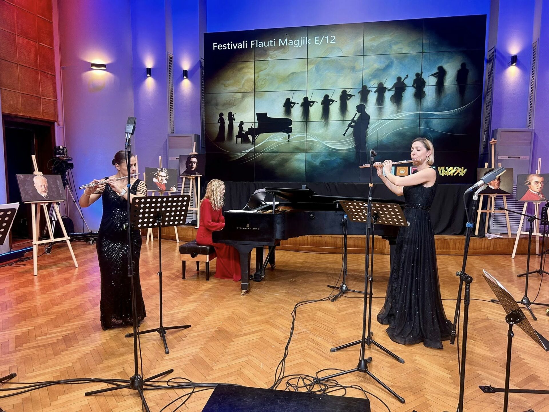 Триото го сочинуваат двете флејтистки Даниела Неделковска и Симона Марочковска Манојловска и пијанистката Светлана Димитриевска. Во вториот дел од концертот следуваше изведба на оркестарот на РТШ со кларинетистот Роланд Бербиу, под диригентство на Фатос Керимај.