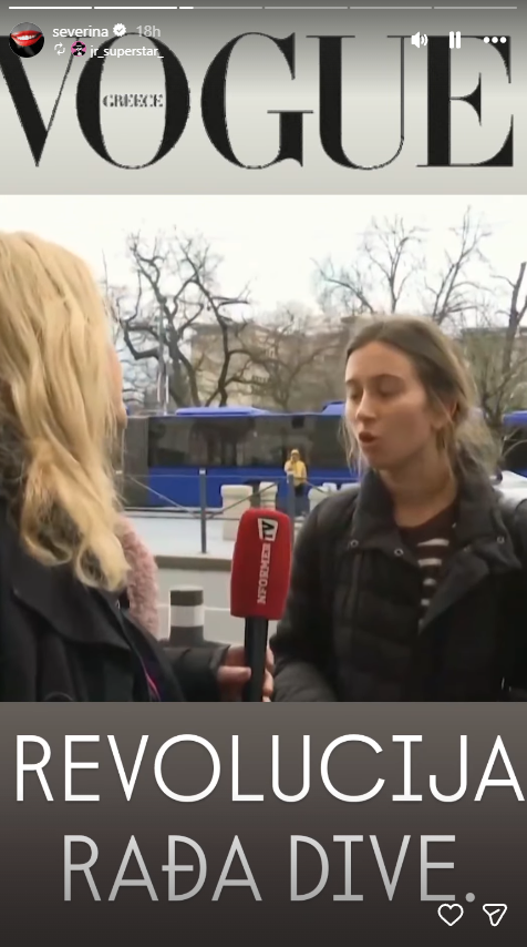 Таа го објави видеото со коментар: „Revolucija rađa dive“, што уште повеќе ја засили неговата видливост и симболиката околу студентските протести.