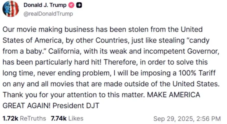 Трамп ќе воведе 100-процентна царина за сите филмови направени надвор од САД