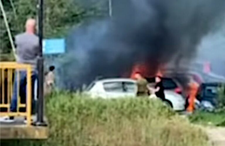 Пет возила во пламен под Кале, војник со брза реакција спречил ширење