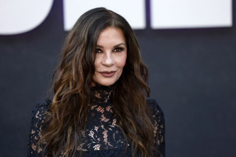 Кетрин Зета Џонс на црниот тепих се појави во црн мини фустан од чипка