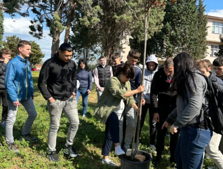 Нови зелени дворови во Охрид и Велес, засадени 90 садници во две училишта