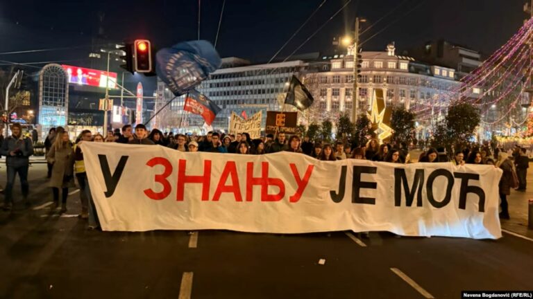 Студентите во блокада протестираат во Белград против „уривањето на универзитетската автономија“