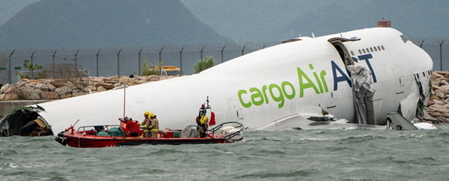 На фотографиите направени по несреќата, која се случила во 3:50 часот по локално време, се гледа товарен авион Boeing 747 со обележја на AirACT, кој е половина потопен во морето во близина на аеродромот.