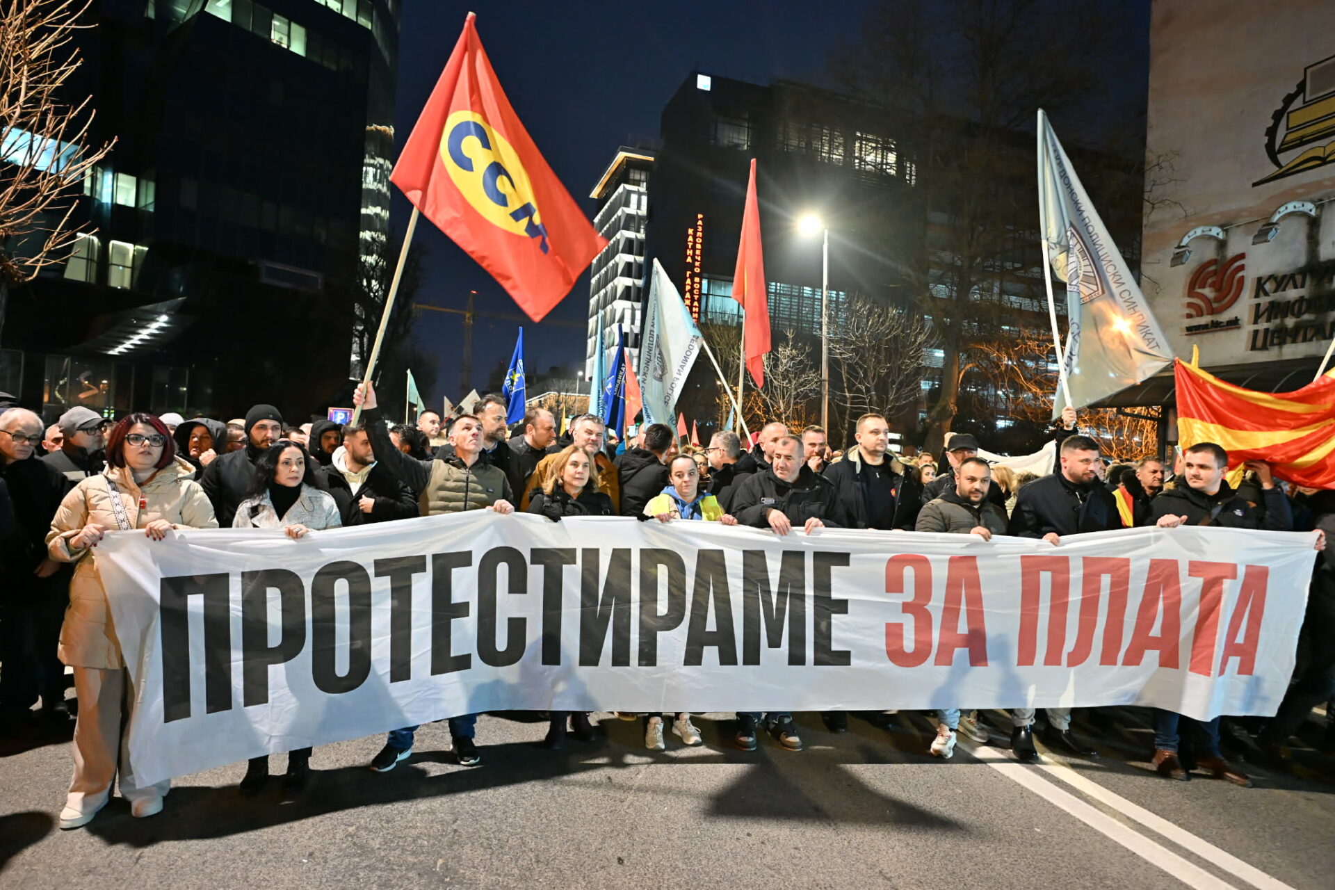 Со овие зборови започна протестот организиран од ССМ, на кој попладнево се приклучија неколку стотици граѓани, работници од различни сектори и синдикални организации. Протестот почна пред зградата на ССМ, а протестната колона најави марш кон Собранието, Стопанската комора и Владата.