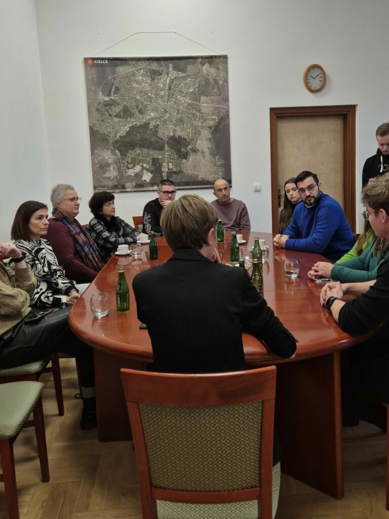 [Ден 1] На средба со градоначалничката на Град Келце, г-а Агата Војда беа претставени активните мерки за поддршка на лицата со попреченост, по што следеше размена на искуства помеѓу трите земји во насока на подобрување на условите за социјалниот, здравствениот и образовниот сектор. Денот продолжи со посета на Урбан Лаб – простор за активно општествено вклучување на младите, акде беше одржана средба со претставници на граѓански организации кои делуваат на полето на социјална инклузија. При посетата на културниот центар на Град Келце се одржа разговор со Регионалниот Совет за предизвиците во вклучување на лицата со попреченост во културата.