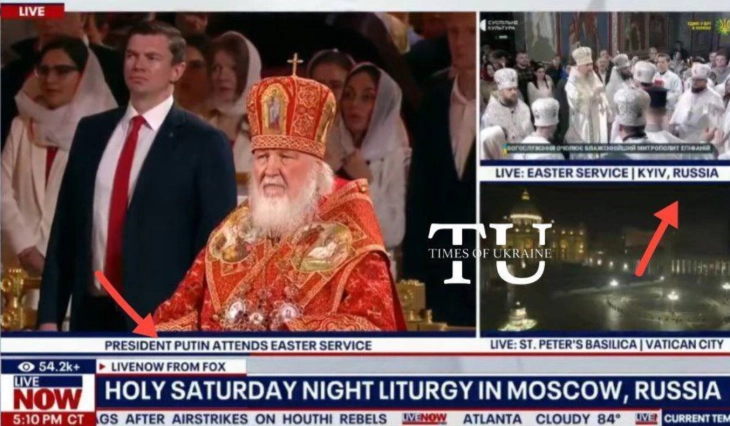 Како што пренесе Анадолија, повеќе украински медиуми јавија дека Фокс њуз емитувал снимки од Велигденските богослужби што се одржуваат низ целиот свет, вклучително и богослужба во Москва на која присуствувал рускиот претседател Владимир Путин.