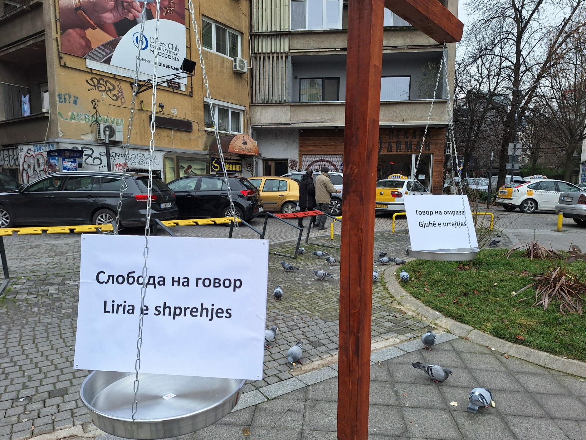 Денес, на скверот кај Ким на булевар „Партизански одреди“, скопјани ќе се сретнат со нова урбана уметничка инсталација насловена „Измери пред да кажеш или напишеш“ која се однесува на сè поприсутниот проблем на говорот на омраза и неговото мешање со поимот слобода на говор.