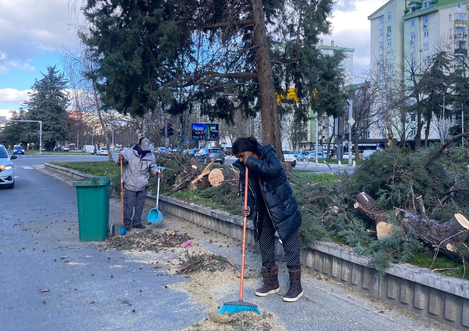 Институциите апелираат граѓаните да бидат внимателни при движење во делови од градот каде што има паднати гранки, нестабилни дрвја или кабли.