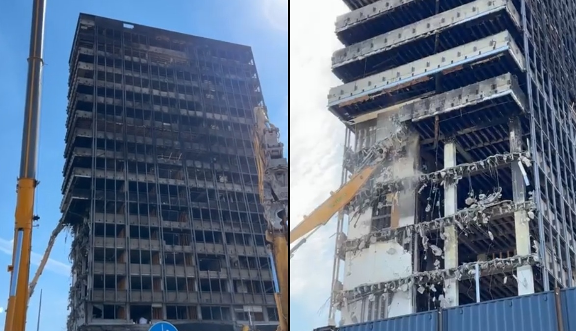 Комплексот „Вјесник“ во Загреб, еден од најпрепознатливите симболи на градот, влегува во завршна фаза на уривање по пожарот што ја оштети зградата минатата година.