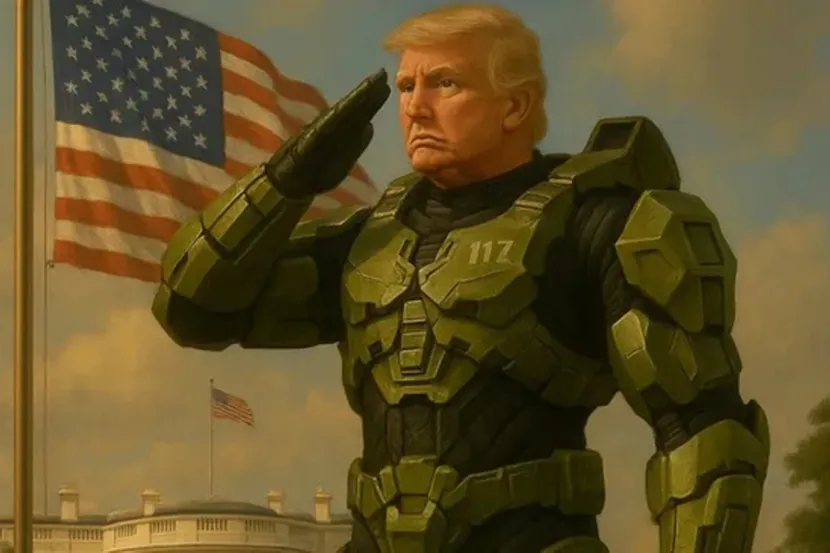 Сè започна неколку дена порано, кога на платформата X беше објавен постер генериран од вештачка интелигенција на кој Доналд Трамп беше претставен како Master Chief од серијата Halo, со симболични референци за „завршување на осум војни за осум месеци“. Објавата беше споделена од официјалната сметка на Белата куќа, што веднаш предизвика лавина од реакции.