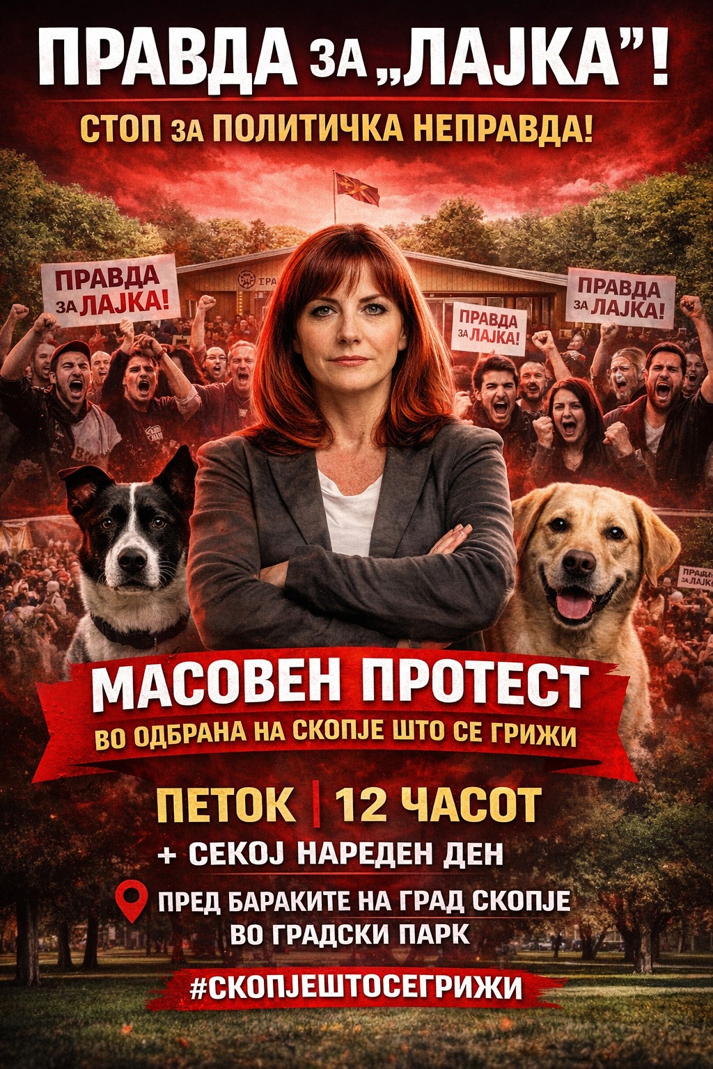 Граѓанската иницијатива „О.К. Млади“ во објава на социјалните мрежи повика на масовен протест кој ќе се одржи во петок со почеток во 12 часот пред бараките на Град Скопје, во Градскиот парк како знак на ревилт од смената на директорката на ЈП „Лајка“ Радмила Пешева.