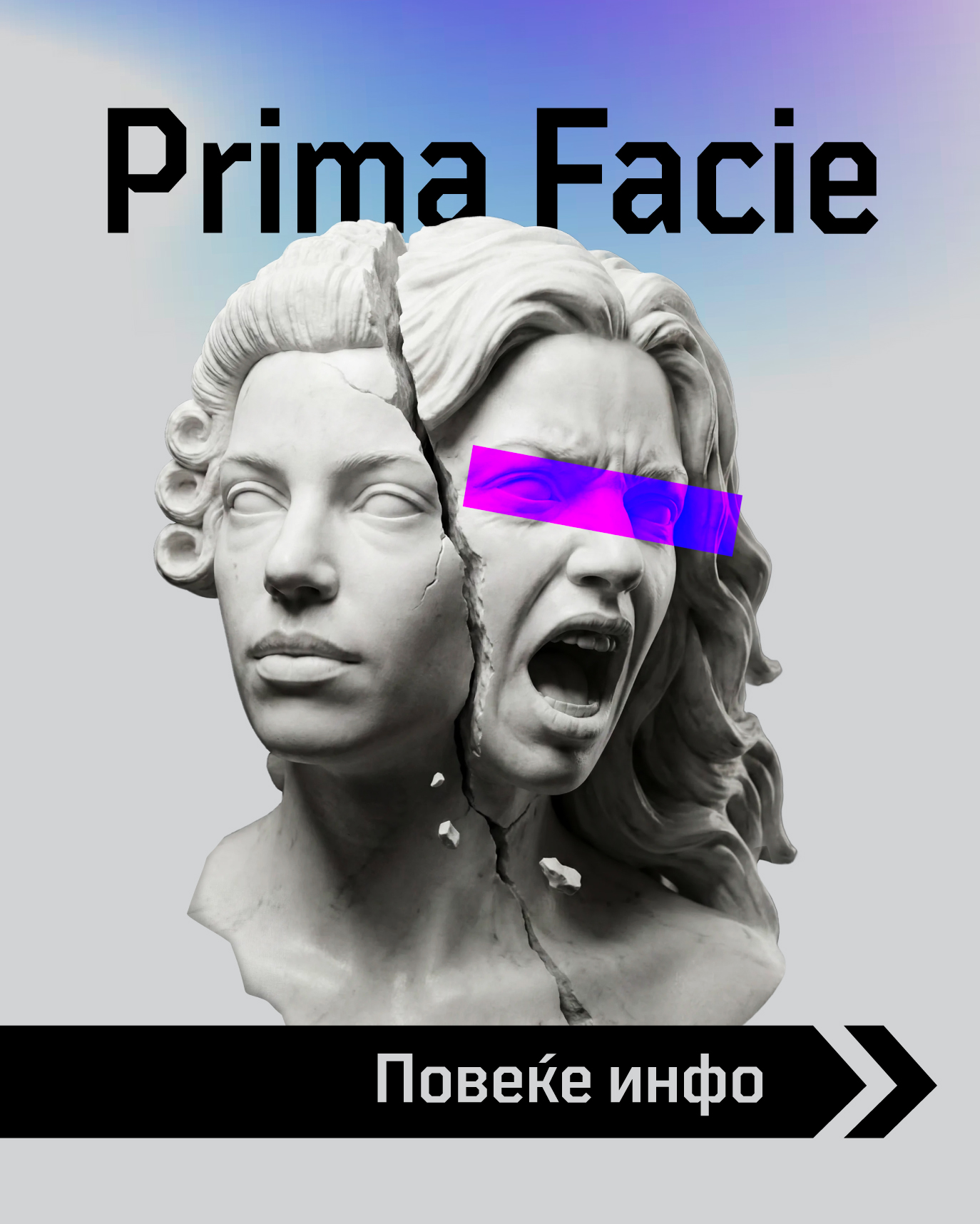 „Прима фацие“ за првпат се поставува на театарска сцена во Македонија и ја следи приказната на Теса Енслер, успешна адвокатка специјализирана за одбрана во случаи на сексуално насилство. Нејзиниот однос кон правниот систем почнува да се менува по личен настан што целосно го преиспитува нејзиното дотогашно разбирање на правдата.