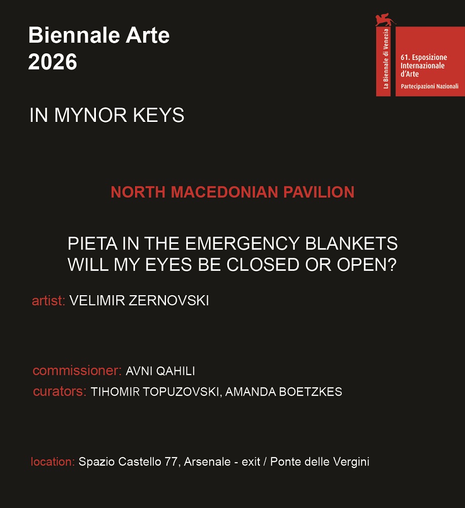 Мултимедијалниот уметник Велимир Жерновски ќе ја претставува Македонија на 61. Биенале за уметност во Венеција со проектот „Пиета во прекривките на ургентноста” — инсталација која класичниот мотив на Пиета го трансформира преку златни прекривки од метализиран материјал користен во вселенски мисии. Настапот го организира МСУ Скопје, под покровителство на Министерството за култура и туризам.